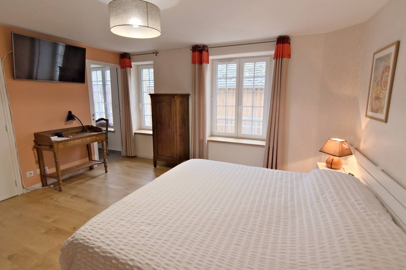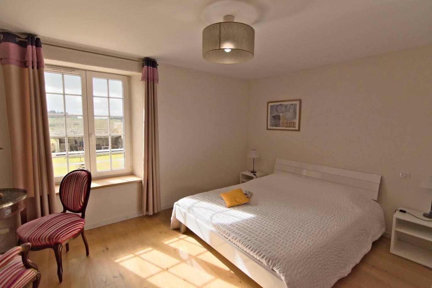 Nos 5 chambres ont été entièrement rénovées avec un soin particulier apporté à l’insonorisation. Les pièces sont spacieuses et équipées de tout le mobilier nécessaire pour un séjour agréable. Les chambres ont été baptisées des noms des parcelles de prés entourant la propriété.